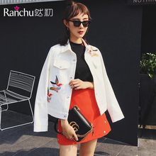然初2016新款秋季女装韩版修身显瘦长袖白色贴补牛仔外套上衣