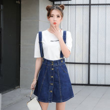 大码牛仔背带裙夏季女2017新款韩版学生宽松a字半身裙短裙胖mm 潮