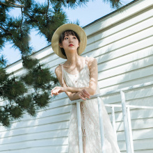 微笑向暖 2017夏季新款文艺复古蕾丝系带中长款宽松吊带裙连衣裙