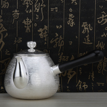 雪花银99纯银烧水壶石寨子养生茶道纯手工牛角侧把壶足银商务送礼