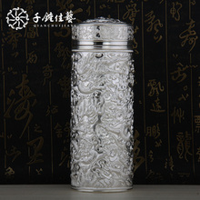 雪花银杯子999纯银水杯银茶杯心经足银内胆保健保温杯商务送礼