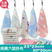 纯棉6层纱布儿童小毛巾卡通童巾宝宝婴幼儿园洗脸婴儿枕巾无荧光