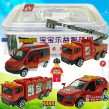 饭盒小子儿童合金汽车口袋玩具袖珍迷你消防车套装警车云梯消防