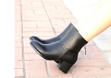 2016秋冬季新款尖头短靴女粗跟女靴马丁靴高跟棉靴子短筒皮靴女鞋