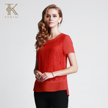 阔太2017春夏T恤新款蕾丝雕花镂空五分袖上衣中老年轻薄妈妈装