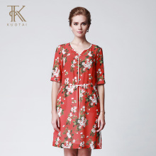 阔太2017夏季新品连衣裙缤纷树叶清爽雪纺中长款直筒裙宽松妈妈裙