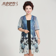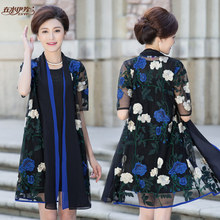 中老年女装夏季中长款雪纺两件套连衣裙大码妈妈装套装裙40-50岁