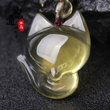 正品黄水晶狐狸吊坠 女款项坠毛衣链天然水晶饰品礼物