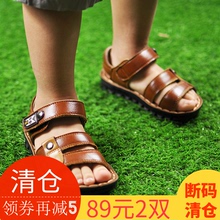 【89元2双】乖乖米奇新款男童凉鞋夏季真皮防滑沙滩鞋软底学生鞋