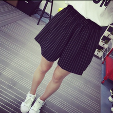 加肥加大码女装高腰阔腿短裤胖mm宽松休闲条纹阔腿裤200斤夏装潮