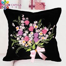 卡菲兰新品丝带绣黑色抱枕3D十字绣植物花卉新款客厅沙发靠垫靠枕