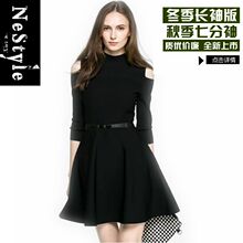 2016欧洲站秋装欧货时尚性感露肩秋冬打底针织连衣裙长袖百搭女装