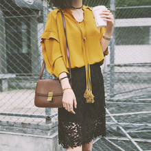 【FEELROOM】 流苏系带 袖子木耳边 九分袖衬衫 上衣 女 2色
