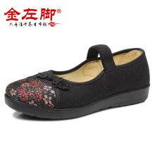 金左脚春秋款老北京布鞋时尚职业工装黑色女鞋坡跟软底防滑女单鞋