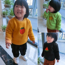 【蝈蝈童品】童装冬季儿童加厚保暖卫衣宝宝上衣男女童圆领衣服