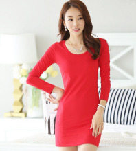 春秋加厚保暖t恤女长袖中长款修身显瘦冬季大码包臀加绒打底衫女
