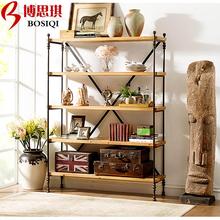 复古工业风格多层收纳架做旧实木搁板展示架铁艺书架层板置物架