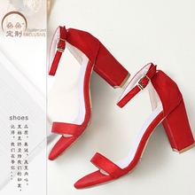 新款百搭一字带凉鞋女夏性感露趾高跟鞋粗跟女鞋大小码33 40 4142