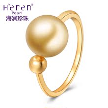 海润珍珠 金色南洋珍珠戒指 18K金海水珍珠可调节戒指 配证书