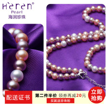 海润珍珠 白色强光淡水珍珠项链长款近正圆送妈妈送婆婆配证书