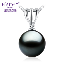 海润珍珠 9K金海水珍珠吊坠项链 大溪地单颗黑珍珠吊坠 配银链