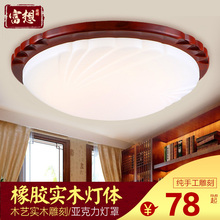 富想新中式圆形吸顶灯LED实木客厅灯具大厅时尚温馨卧室灯饰Y1301