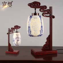 富想中式台灯书房卧室实木台灯床头灯景德镇陶瓷台灯灯具T854台灯