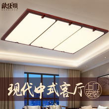 欧仕顿简约现代中式吸顶灯LED实木中式灯长方形豪华客厅餐厅灯具