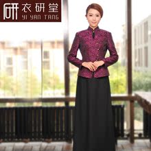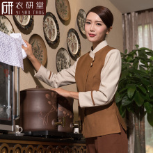 衣研堂酒店服务员工作服秋冬装长袖女餐厅茶楼火锅店唐装工作服