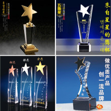 水晶奖杯奖牌定制定做 五角星奖杯 免费设计现货 最佳员工奖 礼品