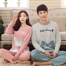 春秋季长袖纯棉情侣睡衣女 胖mm加肥加大码男士200斤家居服套装冬