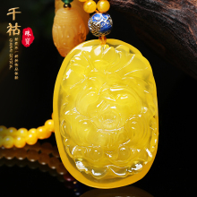 新品千祜珠宝天然老蜜蜡吊坠原石龙牌琥珀项链鸡油黄毛衣链男女款