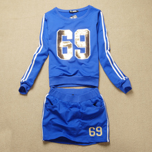 欧洲站春装新款休闲运动服大码卫衣女短裙套装两件套包裙时尚女装