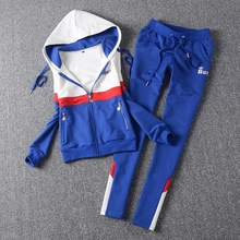 韩版春秋季拼色开衫连帽修身休闲运动套装女卫衣帽衫时尚两件套潮