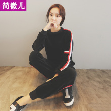 天鹅绒运动套装女2017春季加厚加绒休闲金丝绒女装两件套学生跑步