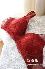 两件包邮 韩国美背无钢圈 定型无痕全蕾丝女内衣文胸酒红色本命年