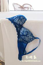 韩国一线高端原单走秀款精致蓝色刺绣蕾丝无钢圈聚拢舒适薄杯文胸
