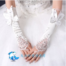 婚纱手套圣诞表演手套蕾丝礼服手套 红白色无指串蝶手套 无指手套