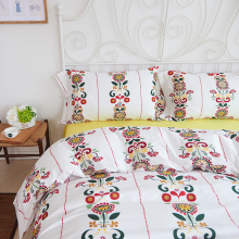 60支长绒棉贡缎儿童涂鸦简约床品北欧卡通纯棉床单床上用品四件套