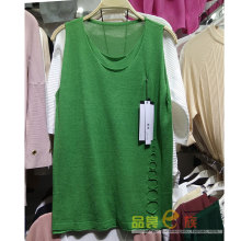 新款双层纽扣亚麻宽松圆领无袖假两件针织衫吊带背心女夏外穿大码