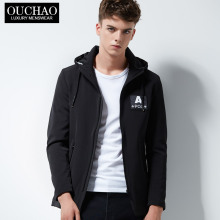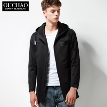 欧朝男士秋季薄款连帽夹克衫青少年中长款修身外套潮男装青年褂子
