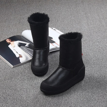 2016冬季新款羊皮毛一体加厚防水台圆头中筒雪地靴女短靴真皮棉鞋
