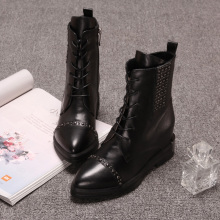 靴子女冬季长筒内增高厚底加绒棉马丁靴女英伦风中筒真皮尖头平底