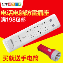 正品公牛电话电脑墙壁开关插座带开关防雷五孔插座面板G10E605