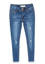 精品外贸 春季磨白磨破 好弹力中腰修身翻边九分小脚牛仔裤 030