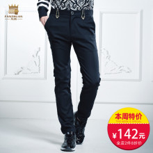 凡转新款欧美时尚修身休闲裤 微弹免烫刺绣男士小脚裤棉长裤男潮