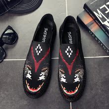 欧美新款夏季时尚乐福鞋男韩版潮流透气印花休闲男鞋套脚懒人板鞋