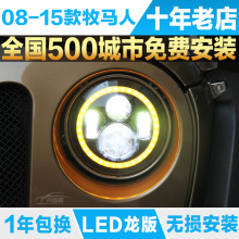 吉普牧马人大灯总成 龙版牧马人改装氙气大灯LED天使眼透镜考拉