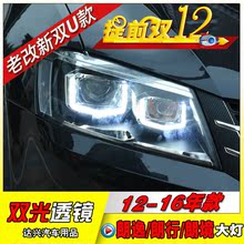 13-14-15-16新朗逸大灯总成改装LED双U日行灯透镜朗行氙气前照灯