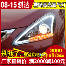 新骐达大灯总成 08-16款骐达大灯改装氙气灯双光透镜LED日行灯